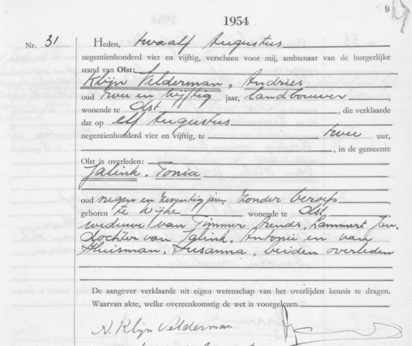 Overl: 11 aug 1954, Wesepe (Gemeente Olst)